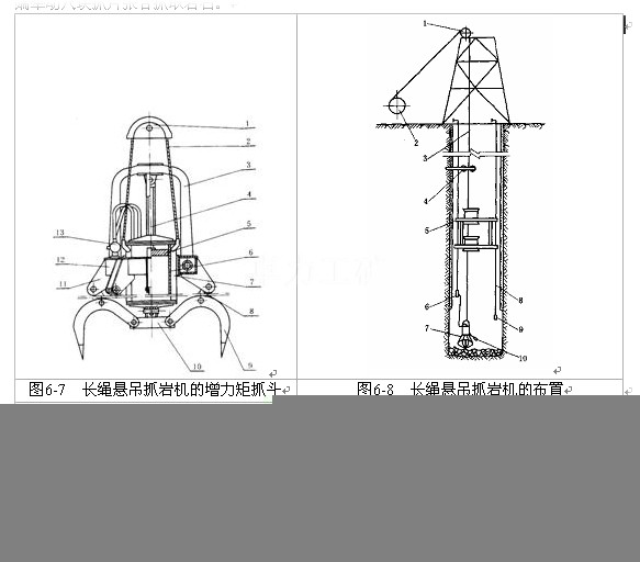 為了安全,地面可增設鑿井絞車,以便對抓巖機進行輔助懸吊,通常可與傘鉆合用一臺懸吊絞車。