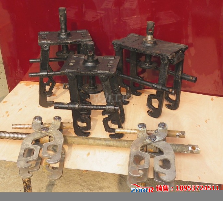 在井下條件復(fù)雜,頂板活動(dòng)頻繁的情況下,一直延續(xù)使用著傘型臨時(shí)支護(hù),在長(zhǎng)期使用過(guò)程中,發(fā)現(xiàn)傘形臨時(shí)支護(hù)弧度與施工巷道的弧度格格不入,傘形支護(hù)的受力點(diǎn)只局限于弧度中心點(diǎn),支撐點(diǎn)也只局限于一個(gè)螺旋柱桿,另外其體積大,分量重,既不便于搬動(dòng),又不便于置放工作區(qū)域,很大程度上影響了工作中的平行作業(yè)和交叉作業(yè),在安全上造成了較大隱患。為此,該隊(duì)結(jié)合實(shí)際情況,集思廣益,積極改進(jìn)支護(hù)方式。他們利用圓鋼、厚鋼板、螺絲桿、螺帽等材料自行設(shè)計(jì)了一組前探梁卡子,可以直接固定在錨桿上,并配合3寸鋼管穿插到前探梁卡子中間,轉(zhuǎn)動(dòng)頂絲桿把手,緊緊卡死鋼管,然后再延伸到前頭的鋼管上鋪設(shè)1米左右的方格金屬網(wǎng)并使其緊貼巖壁。