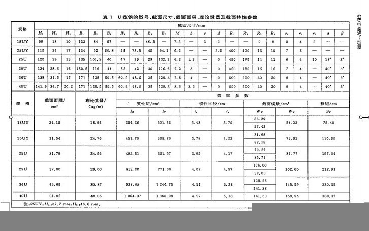 礦用U型鋼參數表