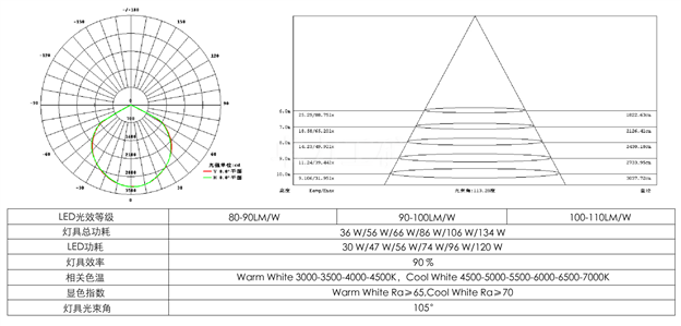 高光效進口LED芯片,專利技術集成封裝,LED光效最高可達到120LM/W。